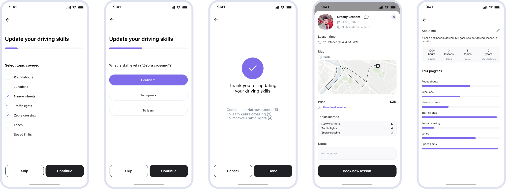 Finding qualified driving instructors and booking lessons was time-consuming, with learners lacking a simple way to track their progress.
